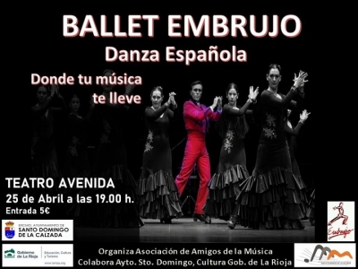 La Asociación Amigos de la Música quiere contribuir a esta celebración. Para ello el día 25 de abril a las 19:00 horas en el Teatro Avenida, contaremos con el Ballet Embrujo. Nos ofrecerán un espectáculo que aúna música y danza, con distintos estilos coreográficos, una selecta música y cuidado escénico.
