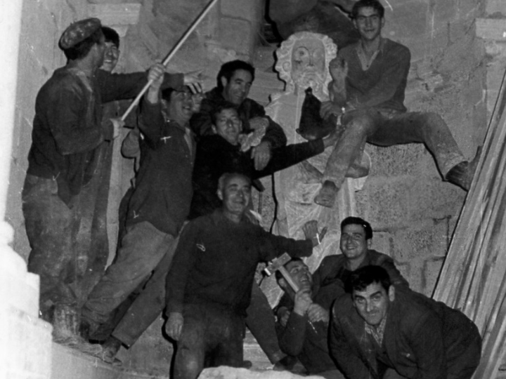 Exposición de fotografía antigua del Grupo Cultural Enrique II de Albret de Sangüesa/Zangoza. En marzo se cumplieron los 50 años de la finalización de las obras de restauración en auzolan de la iglesia de Santiago. Con las fotografías que exponemos queremos reconocer a todos aquellos que participaron de una u otra forma en las obras realizadas a lo largo de tres años.