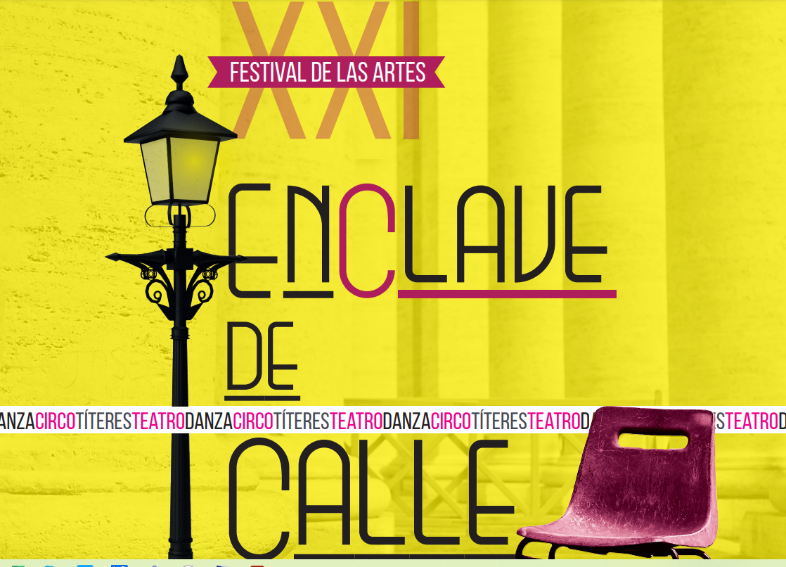 Entre los días 10 y 12 de septiembre tendrá lugar la XXI Edición del Festival de las Artes Enclave de Calle. Sí, han pasado 21 años desde aquel el mes de septiembre del año 2000. Un Festival con vocación de abrazo y bienvenida, que invita al paseante, vecino o visitante a ser protagonista y dejarse sorprender. Circo, danza y música por calles y parques, paseos y plazas se disponen al servicio de ocurrentes propuestas escénicas, impulsadas por polifacéticos contadores de historias en ese espacio, donde todo puede darse. Una creación profundamente humana y de actualidad. Y mucho más para ver ¡Queden todos invitados!
