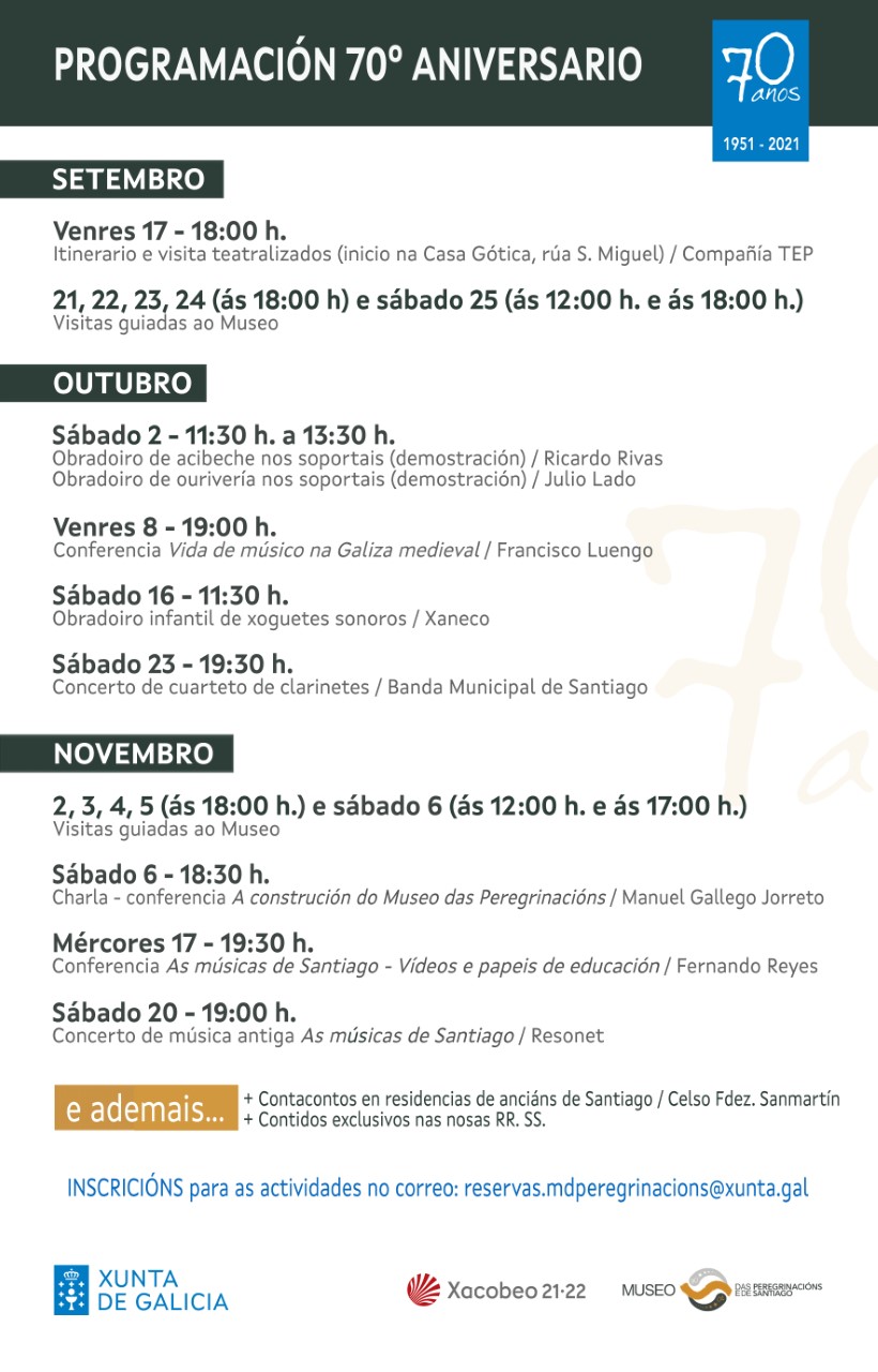Con motivo de la conmemoración del 70 aniversario de la creación del Museo de las Peregrinaciones y de Santiago la institución presenta un nuevo programa de actividades para los meses de septiembre a noviembre de 2021.