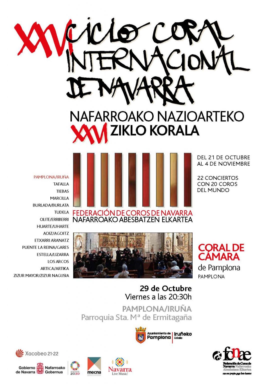 Dentro del XXVI Ciclo Coral Internacional de Navarra 2021, concierto de la Coral de Cámara de Pamplona.