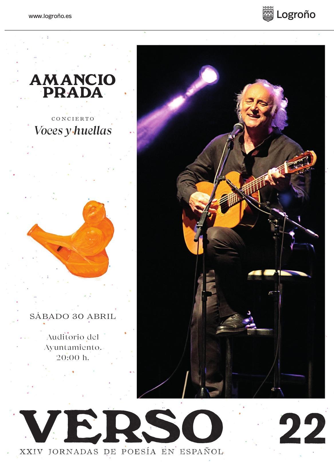 Verso 22: XXIV Jornadas de poesía en español. Un recital cuyo repertorio, amplio y variado, permite evocar aquellas voces y huellas que han alumbrado mi vida desde niño y que han alimentado mi propio canto: Rosalía de Castro, Juan de la Cruz, Federico García Lorca, María Zambrano, Carmen Martín Gaite, Chicho Sánchez Ferlosio, Teresa de Jesús, Gustavo Adolfo Bécquer, Agustín García Calvo… Sonarán, pues, canciones antiguas y recientes, inéditas y clásicas, algunas con su historia peculiar. Un recital abierto a lo que pueda ocurrir, “entreme donde no supe”, más allá de lo previsto, con la ilusión tal vez de revelar y sorprenderme a mí mismo haciendo lo que no sé hacer. Porque no todo está escrito.
