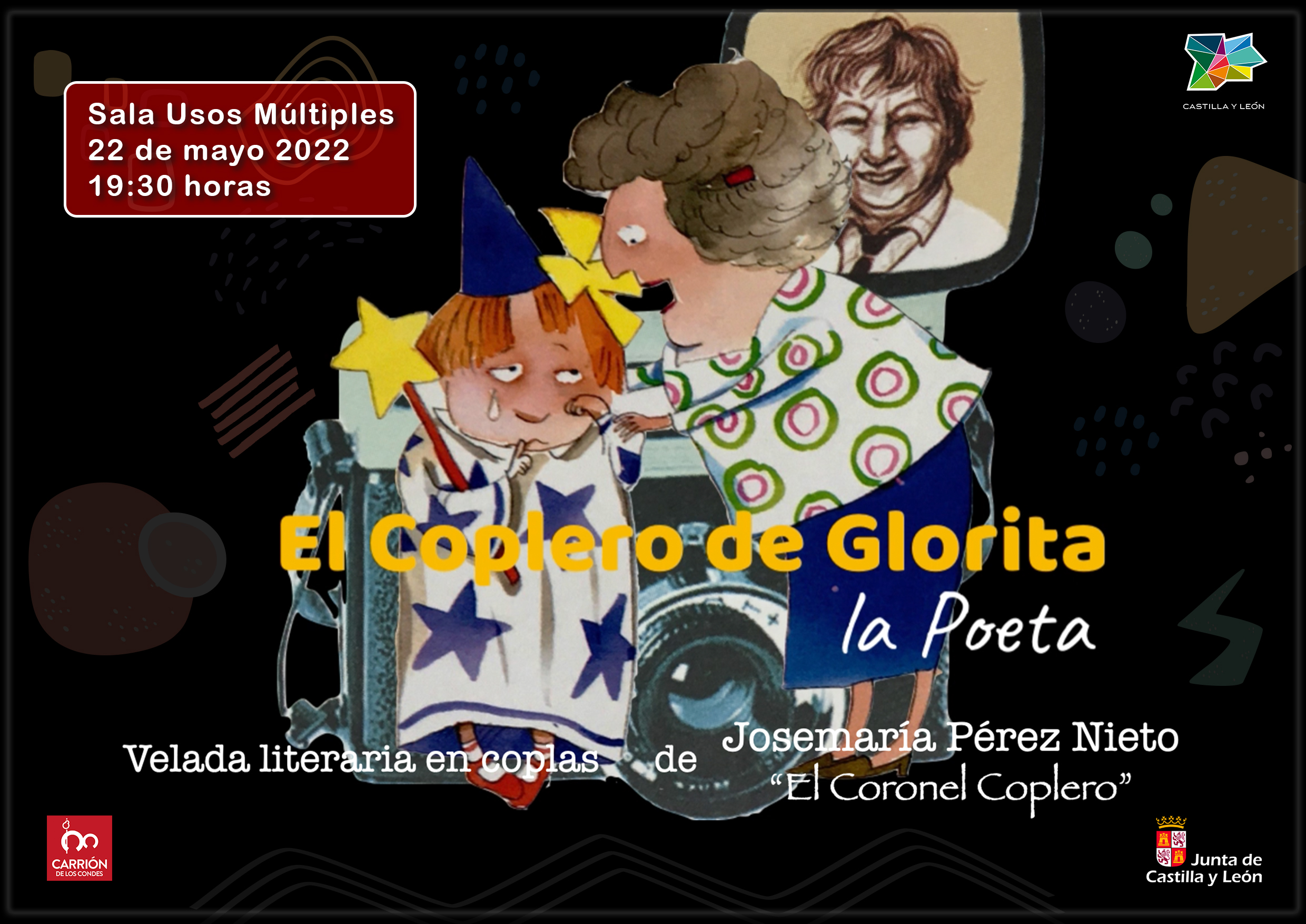 Un divertido recital poético, en el que se recordará en coplas la animada biografía de Gloria Fuertes. Velada literaria en coplas – «El Coplero de Glorita la Poeta», de José María Pérez Nieto.