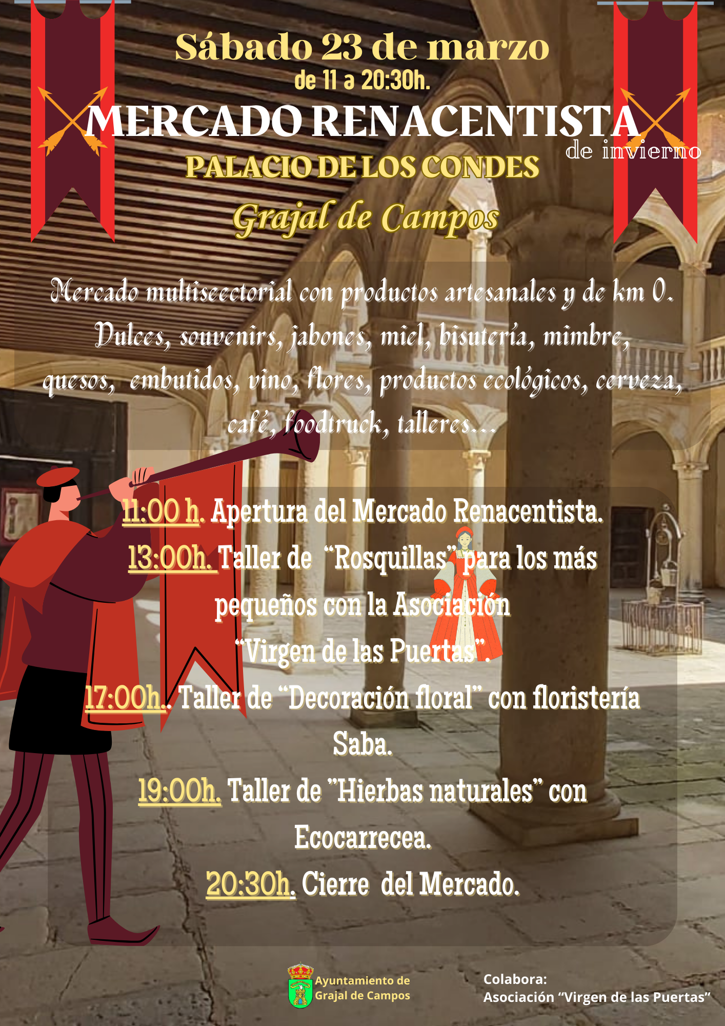 El Mercado Renacentista de Grajal de Campos (León) se celebrará el 23 de marzo de 2024 en El Palacio de los Condes, organizado por el Ayuntamiento de Grajal de Campos.