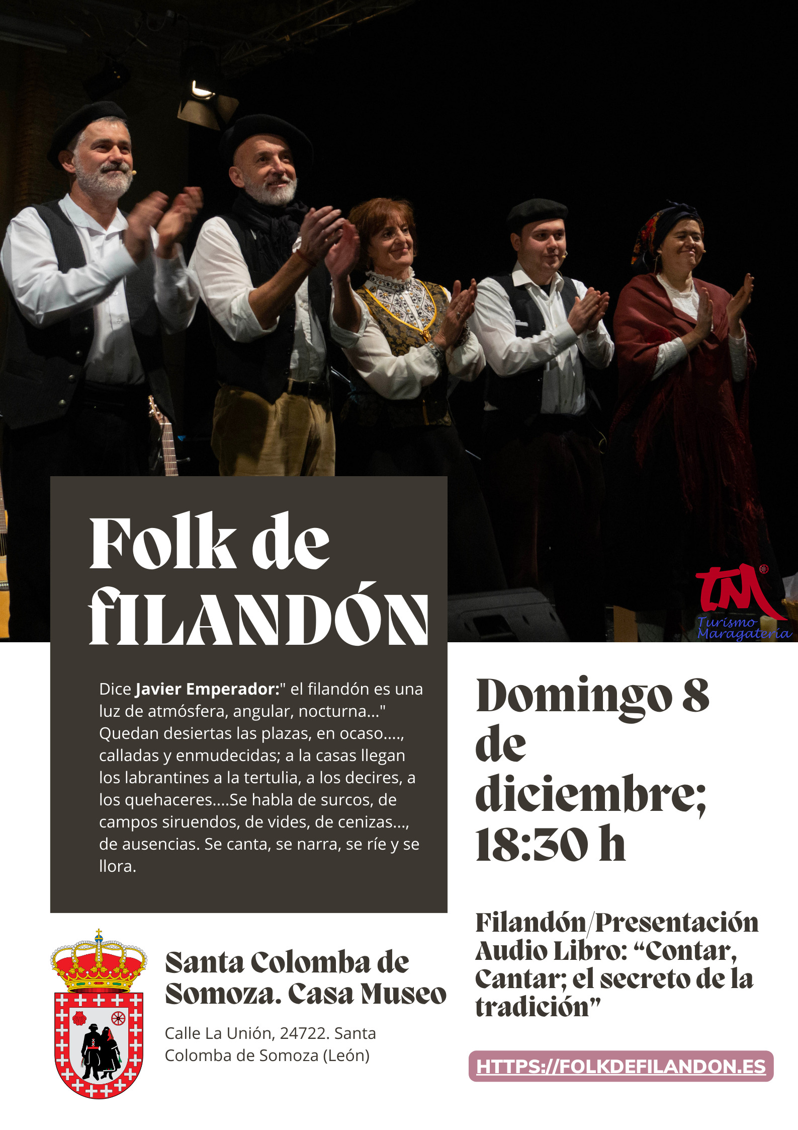 El grupo paramés Folk de Filandón, fieles al compromiso de dar a conocer algunos de los usos y las costumbres que nos son comunes en la provincia de León, poniéndolos en valor y concretándolos en una de sus señas de identidad, los filandones viejos, viene desarrollando conciertos teatralizados en distintos espacios, localidades y escenarios de nuestra provincia.