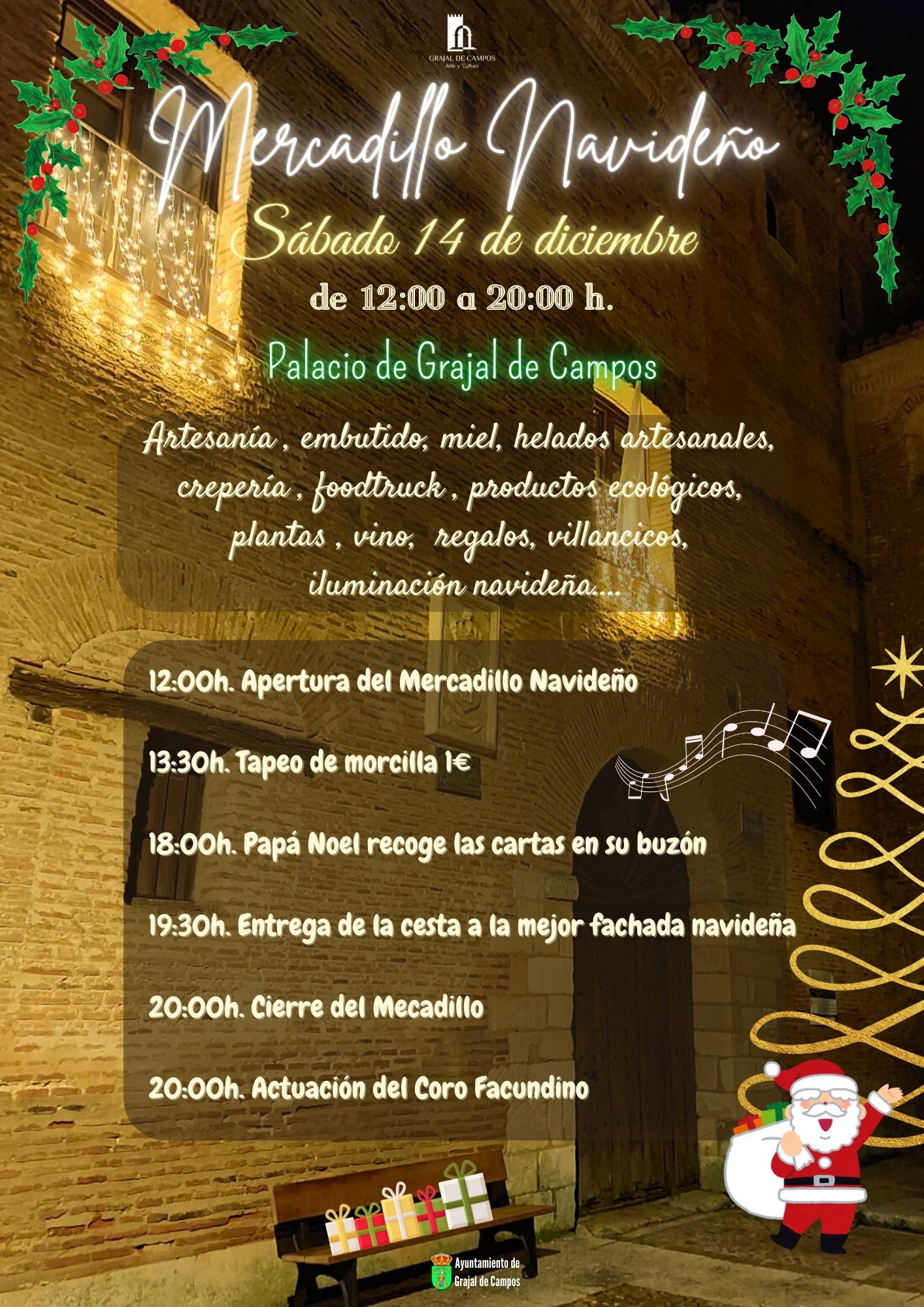 El sábado 14 de diciembre tiene lugar un mercadillo navideño en Grajal de Campos.