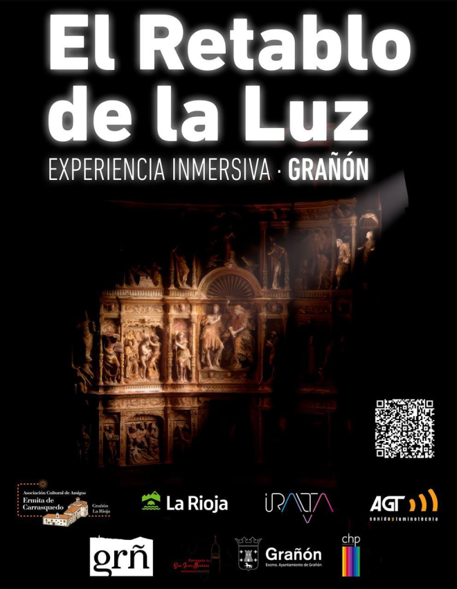 ‘El retablo de la luz, una experiencia inmersiva grñ’, es un espectáculo diseñado para sumergir al público en una proyección multisensorial utilizando las últimas tecnologías del videomapping, la fotogrametría, el modelado 3D y la animación de la arquitectura y las figuras del retablo, la generación de partículas y fluidos que cobran vida e iluminan el retablo. El sonido envolvente, la narración, la banda y los efectos sonoros contribuyen a una sensación de inmersión total haciendo que los espectadores se sientan “dentro” y completamente sumergidos en el entorno y la narrativa del espectáculo.
