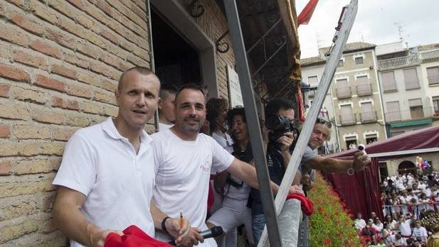El chupinazo lo lanzaron Lino y Txarras, destacados por ayudar en la explosión del año pasado: » la unión y la solidaridad del pueblo, que tuvo una buena respuesta frente a la tragedia»