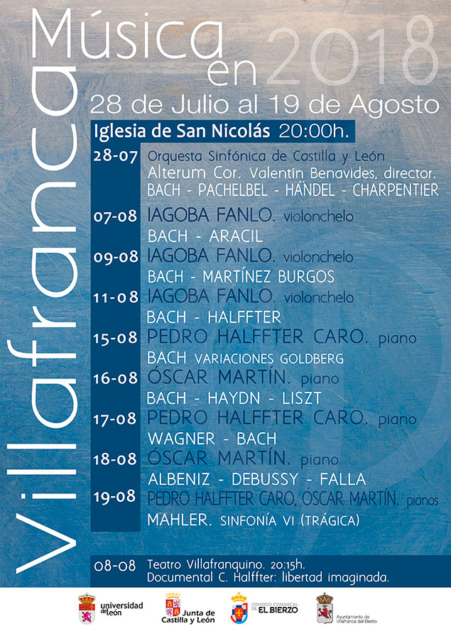 El ciclo de música clásica de Villafranca del Bierzo crece en su edición de 2018 hasta incluir en su agenda nueve conciertos, que tendrán lugar en la iglesia de San Nicolás desde este sábado y hasta el 19 de agosto. Además, la actual edición supone la recuperación del curso de composición Cristóbal Halffter, que este año tendrá como profesor invitado al catedrático de violonchelo del conservatorio de Madrid Iagoba Fanlo.