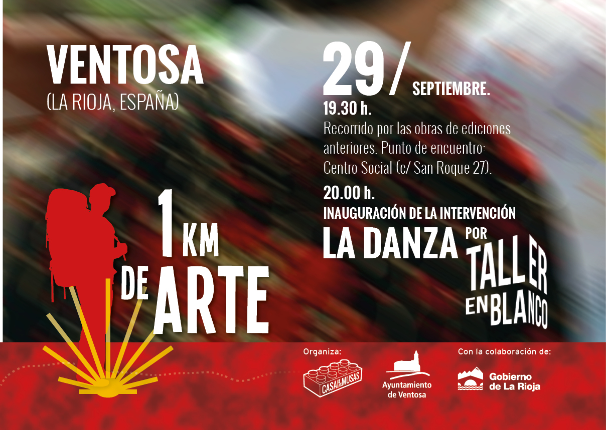 Taller en Blanco:Un grupo de jóvenes arquitectos que realizan proyectos artísticos donde hibridan su disciplina con la escultura, la pintura o la fotografía desde lo conceptual y el diseño. De esta manera han investigado sobre la tradición más antigua de Ventosa: La Danza a la Virgen Blanca, para ofrecernos una obra que deje constancia física en el pueblo de este hecho que lleva repitiéndose alrededor de 500 años. Un paseo por las obras, una conversación con Taller enBlanco y degustación.