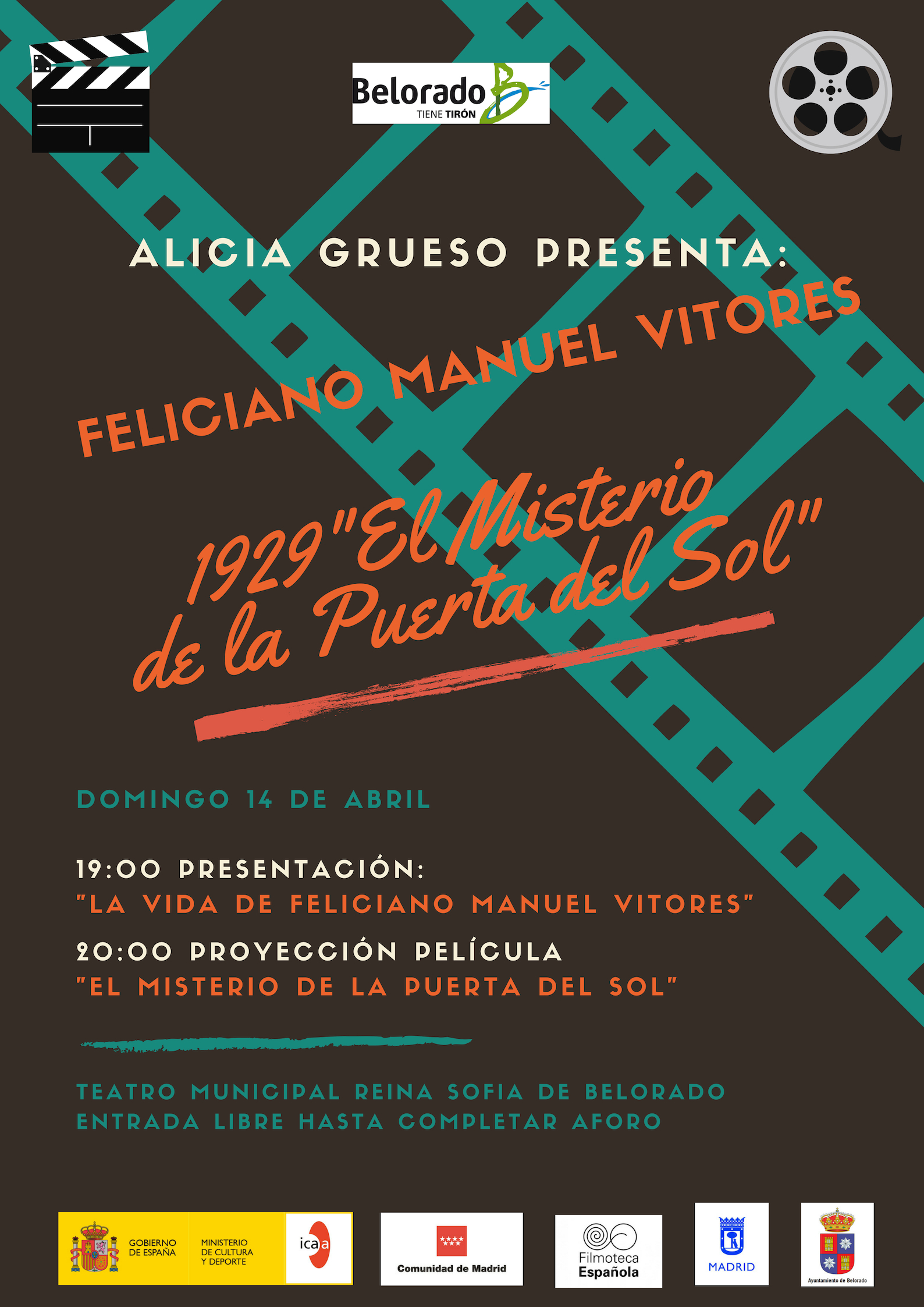 19:00 Presentación Historia de Don Feliciado Manuel Vitores, ilustre beliforano. Gracias a su labor como productor se realizó la primera película sonora del cine español, El misterio de la Puerta del Sol, en el año 1929.