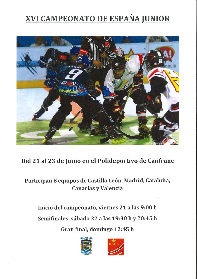 21, 22 y 23 de Junio, XVI Campeonato de España Junior de Hockey Linea. Participarán 8 equipos de CastillaLeón, Madrid, Cataluña, Canarias y Valencia.