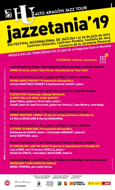 XIII Festival Internacional de Jazz del 1 al 20 de julio en #Canfranc, #Castiello de #Jaca, #Ansó,#Candanchú y #Echo (#ComarcaJacetania)