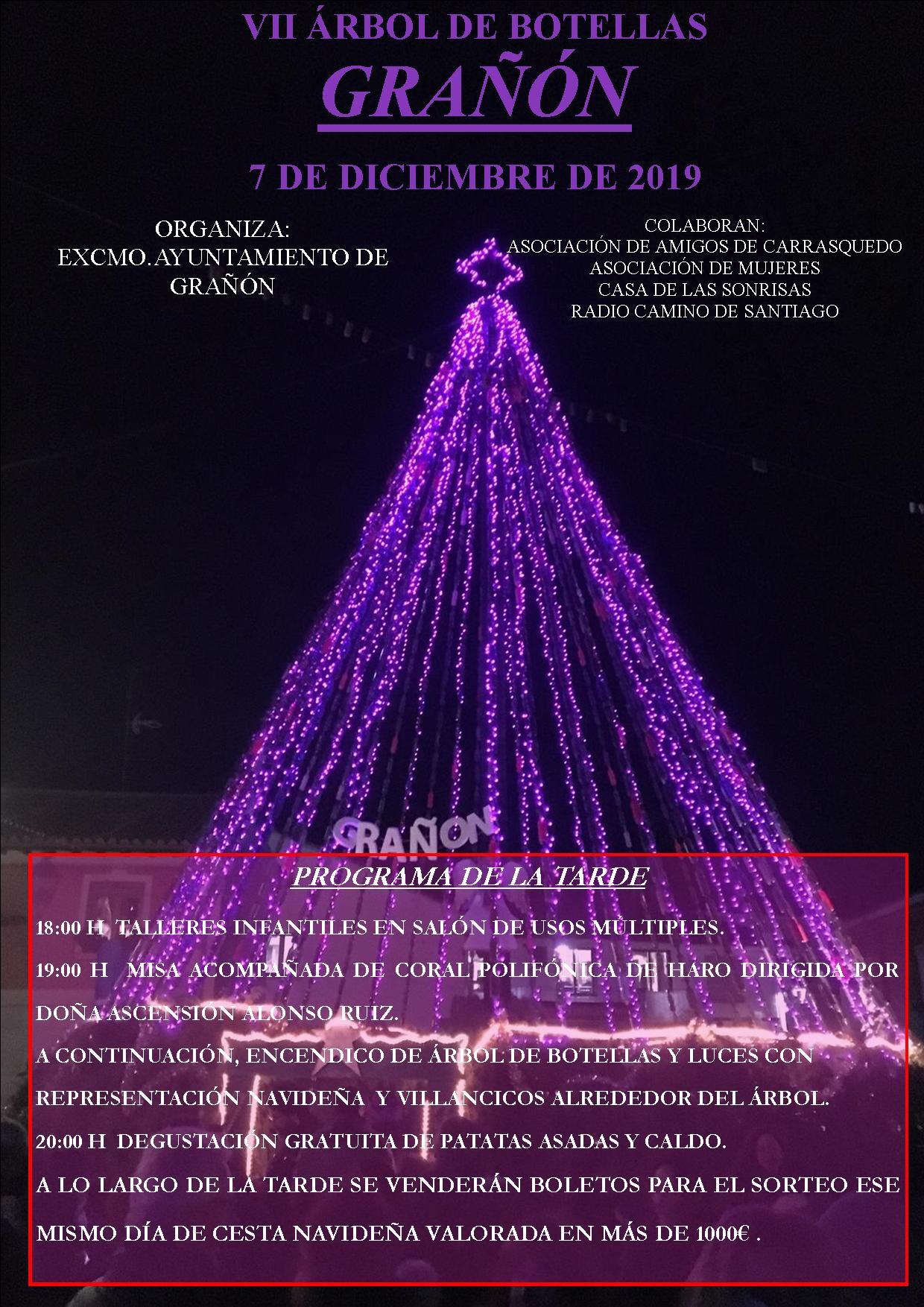 El 7 de diciembre a las 8 de la tarde en la Plaza de Grañón se encenderá el original Árbol de Botellas
