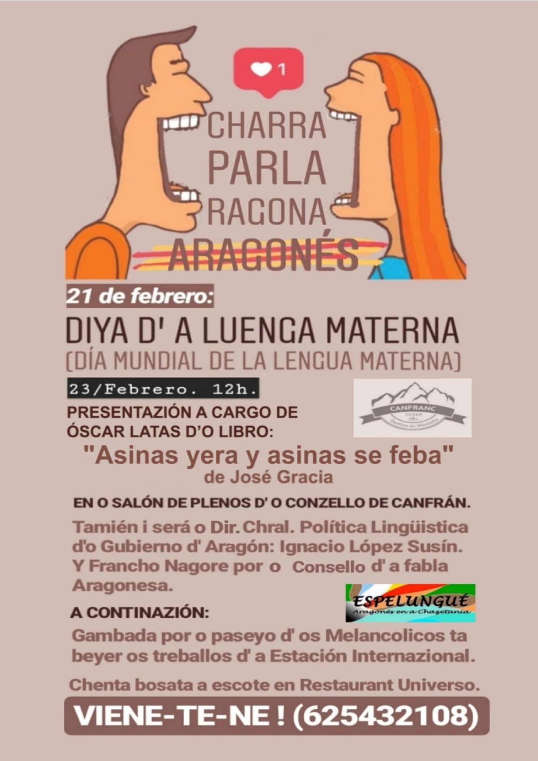 Nos acompañarán familiares del mismo, el Dir. Gral de Politica Lingüistica del Gobierno de Aragón, D. Ignacio López Susín y Francho Nagore,profesosr de la Universidad de Zaragoza y miembro del #Consello d’a #Fabla Aragonesa.