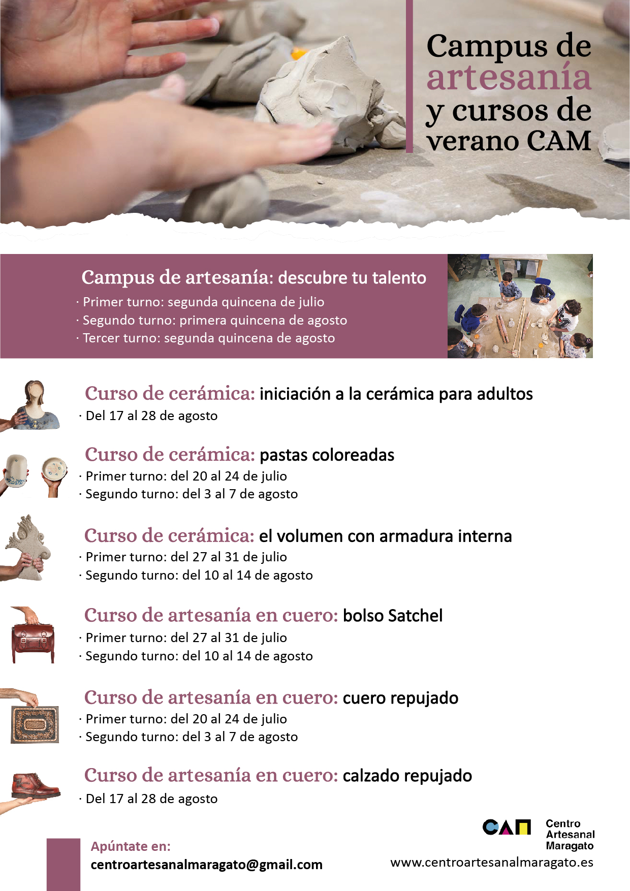 El Centro Artesanal Maragato ubicado en Santa Colomba de Somoza (León) ofrece este verano cursos dirigidos a todos los públicos. Los adultos podrán iniciarse en la técnica del cuero y la cerámica, creando piezas con volumen, cuero repujado, zapatos o incluso un bolso Satchel.