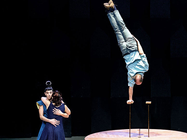 Tres caracteres sensibles y caóticos peregrinan circularmente en una pista de circo eterna e universal. Las emociones y el frenesí por compartir son el impulso de este curioso viaje en el que cada uno de ellos consigue convencer al otro de lo que ni él mismo sabe.