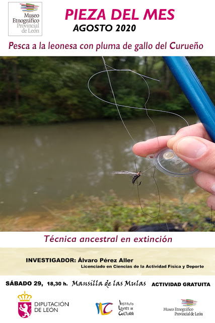 La Diputación de León y el Instituto Leonés de Cultura a través del Museo Etnográfico Provincial de León, en la Actividad “Pieza del Mes”, ha programado para este mes de agosto una conferencia que lleva el título: “Pesca a la leonesa con pluma de gallo del Curueño. Técnica ancestral en extinción”.