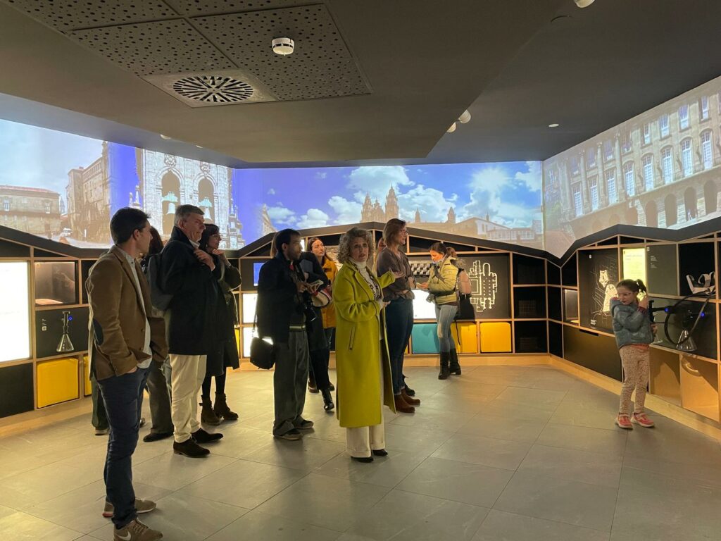 Posteriormente se accede a otro espacio, donde entran en juego otros sentidos. Y es que se puede oler un pinar, el boj, la olla jacetana o la lluvia, elementos que rodean el entorno del Camino de Santiago en la Jacetania. A esto se suman, tal y como ha explicado la concejala de Turismo, Lucía Guillén, relieves que se pueden tocar, como “huellas de animales que había en la zona y acechaban a los primeros peregrinos, la propia ropa que llevaban, representaciones del capitel de los músicos o el ajedrezado jaqués”.