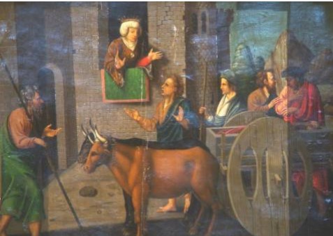 Episodio de la reina Lupa. Tabla conservada en un retablo de la iglesia de Santa María, en Villalcázar de Sirga (Palencia)