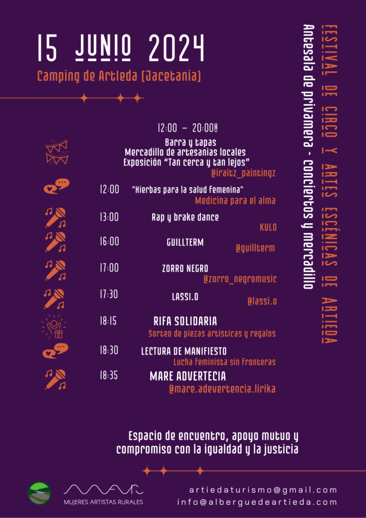 Sobre el III Festival de Circo y Artes Escénicas de Artieda: El Festival de Circo y Artes Escénicas de Artieda es una celebración anual que reúne a artistas de diversas disciplinas escénicas y circenses para promover la cultura y el arte en la región. El programa centra sus actividades en octubre, en el ya mítico Mes del circo de Artieda. Este año, el festival se enriquece con la inclusión de un evento dedicado al rap feminista y la defensa del territorio, reafirmando su compromiso con la justicia social y la igualdad.