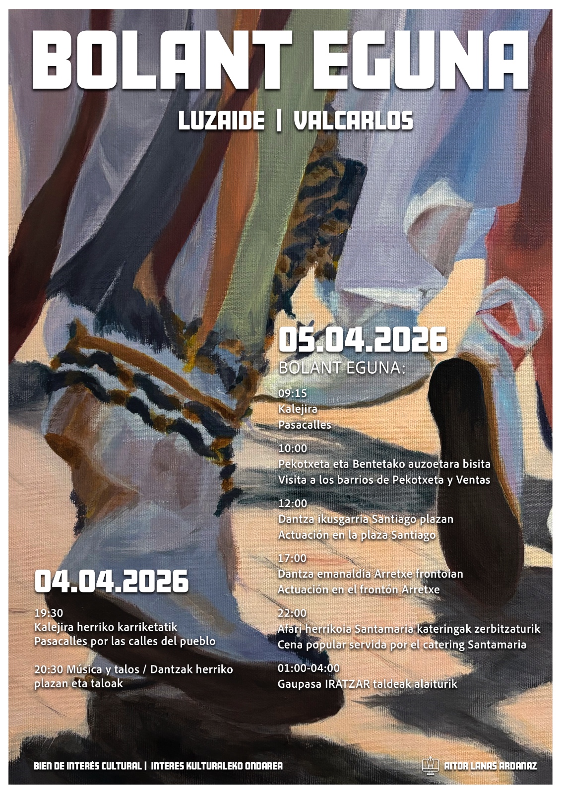 Los «bolantes» de Luzaide – Valcarlos, la primera localidad del camino francés, que da la bienvenida a los peregrinos que desde Francia se encaminan hacia su recorrido  pasando por Navarra . Los elegantes dantzaris son los encargados de interpretar una de las danzas más llamativas y ancestrales de Navarra, bailan el domingo de Pascua por la mañana en la Plaza de Santiago y por la tarde en el frontón.