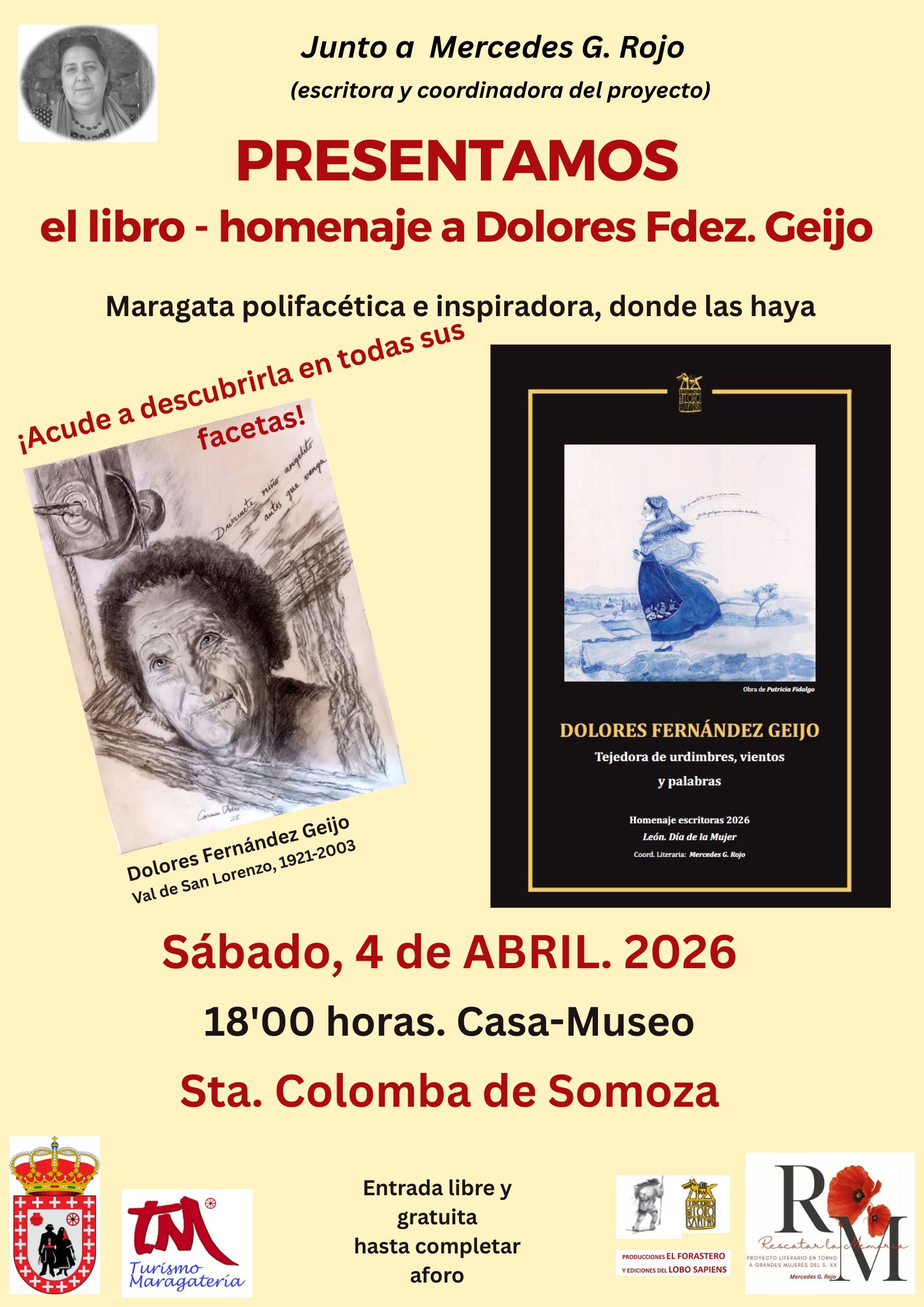 A este acercamiento a su figura a través del libro Dolores Fernández Geijo. Tejedora de urdimbres, vientos y palabras, además de los nombres de algunas de las escritoras y artistas plásticas ya habituales en este proyecto, contribuyen firmas como las de José Luis Puerto, José Luis Alonso Ponga, Mª José Cordero, David Álvarez Cárcamo, Rodrigo Martínez, Fulgencio Fernández, Ana Gaitero…, por nombrar solo algunas de las que aparecen en el segundo apartado del libro; un libro que ha contado con el patrocinio del Ayuntamiento de Val de San Lorenzo o la colaboración de otros como los de Astorga, Gordoncillo, Santa María del Páramo, Villasabariego o Villaturiel, el grupo Masticadores LEÓN, la Fundación PROCONSI o REALE Seguros.