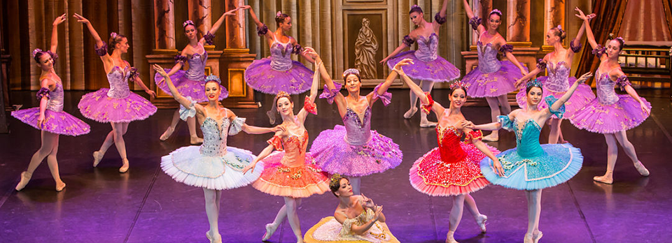 Estamos ante la obra más grandiosa del ballet clásico universal: En las versiones del Ballet Mariinskiy de San Petersburgo participan más de 200 artistas en escena. En este espectáculo hay tres actos con grandes bailes del palacio real: el bautizo de la Princesa Aurora, la celebración de su 16 aniversario y la Boda. A la boda de la Princesa Aurora, están invitados muchos personajes de los cuentos de Charles Perrault.