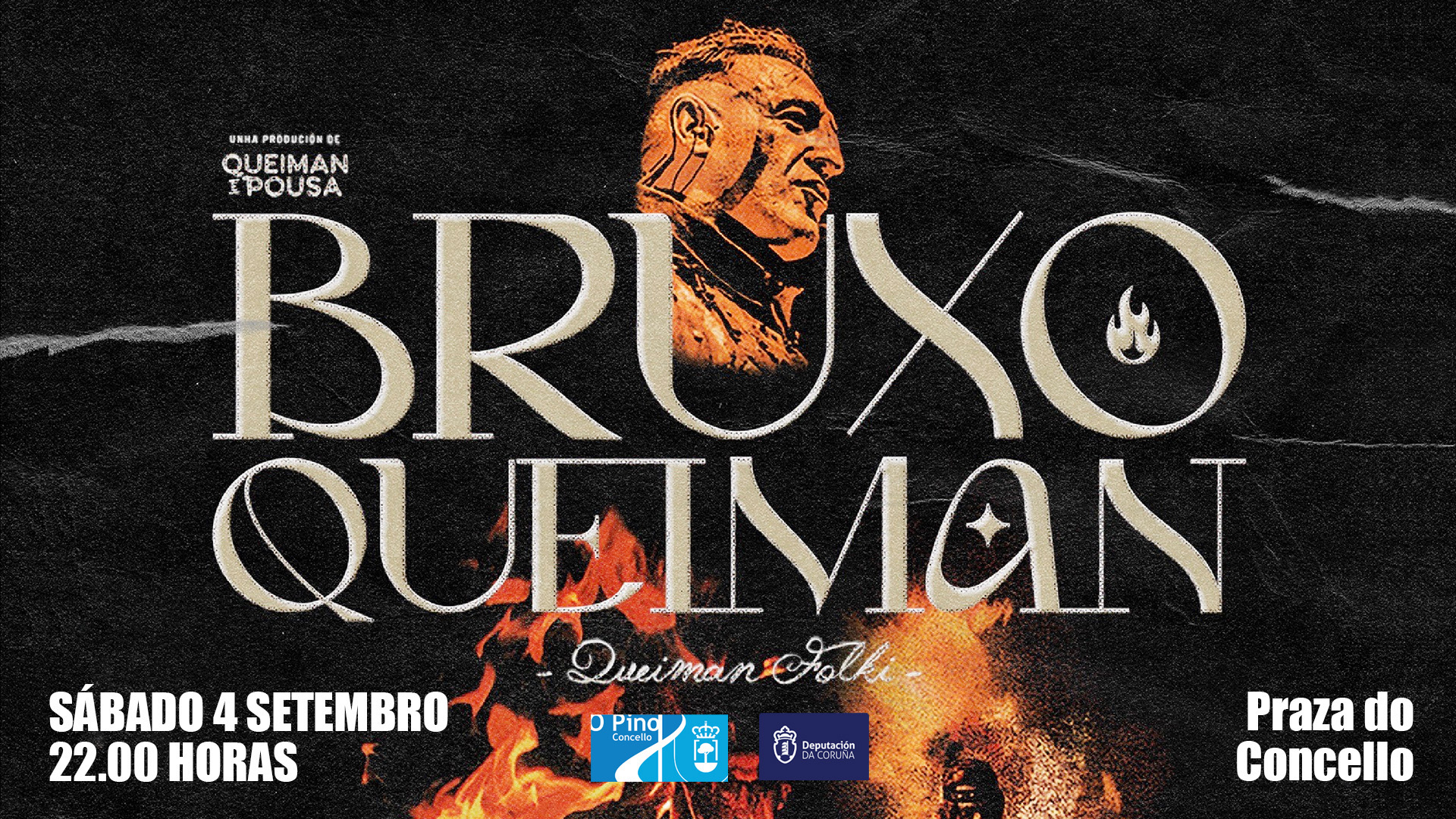 24-08-2021. O Pino. O Concello do Pino recupera o vindeiro 4 de setembro un dos espectáculos que se suspenderon o 31 de xullo debido a elevada incidencia da covid-19 no municipio. O primeiro sábado de setembro Bruxo Queiman ofrecerá o seu espectáculo de lume Queiman Folki na praza do Concello a partir das 22.00 horas.