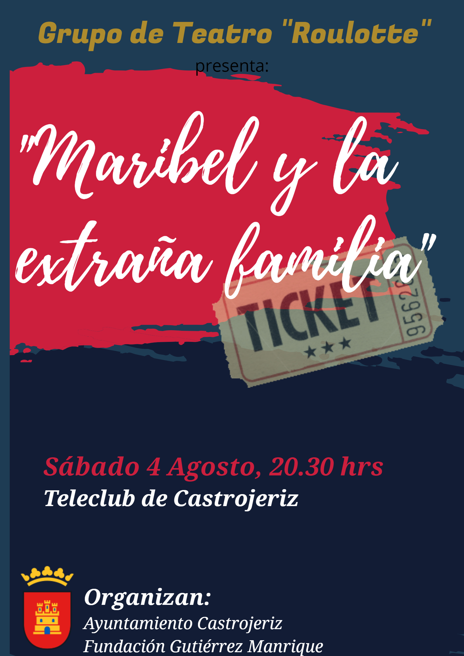 El grupo de teatro Roulotte llevará a cabo la representación de la obra "Maribel y la extraña familia", a las 20.30 hrs en el Teleclub. Entrada libre hasta completar aforo.