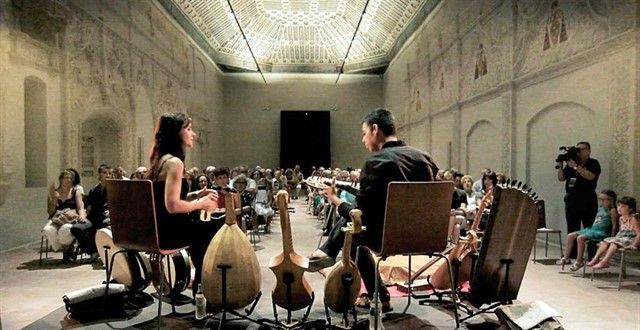 La iglesia de Santa María la Blanca de Villalcázar de Sirga (Palencia) acoge este miércoles el concierto ‘Peregrinatio. Música y viajes medievales’ a cargo del trío liderado por el músico e investigador Emilio Villalba, 1976), un enamorado de la música antigua que cuida al detalle cada vertiente del género, desde la partitura a la ejecución, pasando por la construcción y el coleccionismo de instrumentos que replican con exactitud las piezas de cada época.