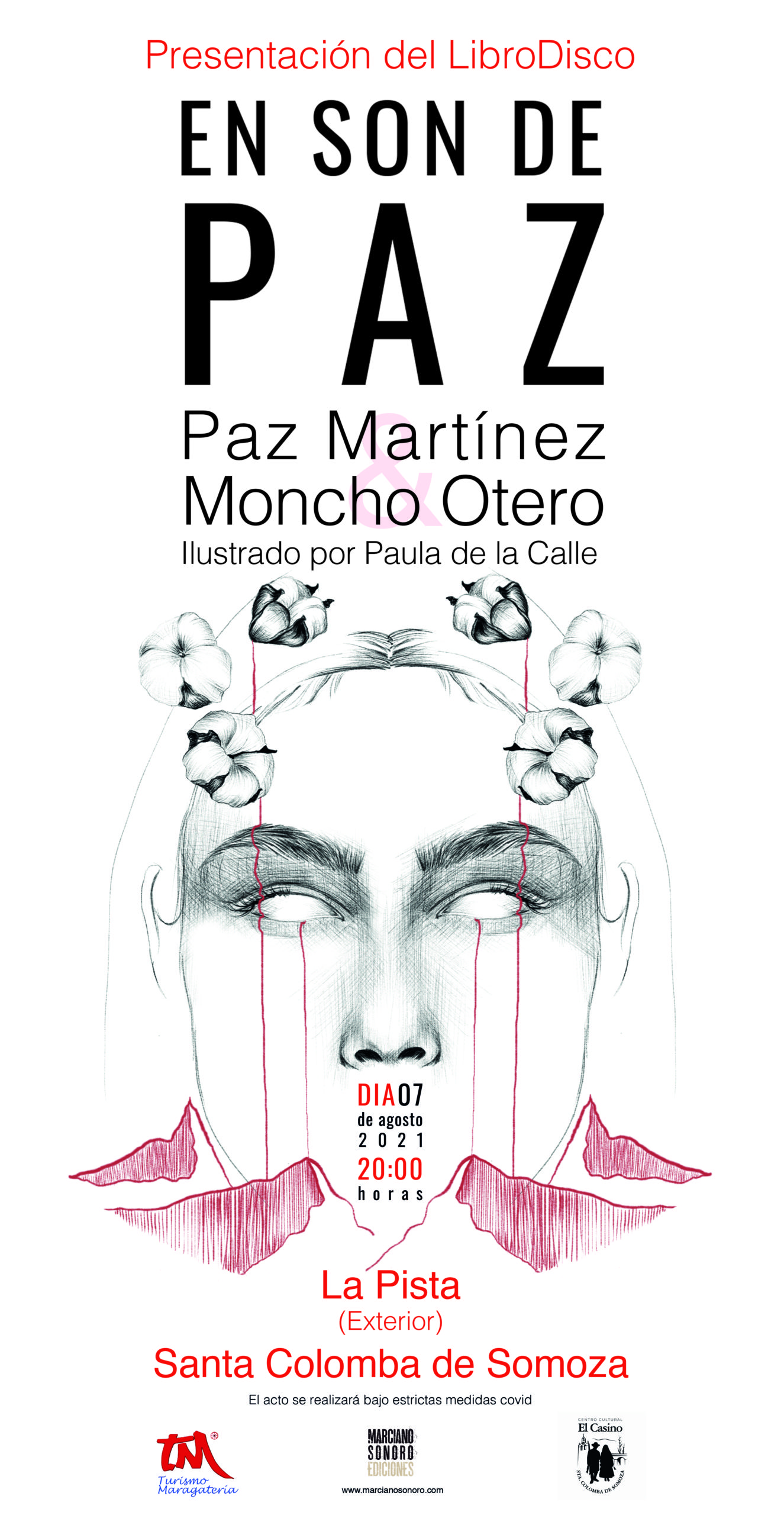 Después de cinco años de caminar juntos por el mundo de la poesía Moncho Otero y Paz Martínez se unen en el libro disco “En Son de Paz” para convertir la poesía de la autora en música, en un trabajo que ha contado con colaboradores como el músico Antonio Toledo, que ha trabajado en producciones discográficas, grabaciones y directos con músicos de la talla de Joaquín Sabina, Miguel Ríos, Martirio, Pedro Guerra, Ismael Serrano y que en esta ocasión ha puesto sus instrumentos, su estudio y generosidad para participar en el nacimiento de este proyecto. También se puede escuchar en este trabajo los instrumentos de viento que rinden homenaje al Teleno y a las Tierras Maragatas ejecutados con el arte de Lorenzo Azcona, conocido saxofonista que ha trabajado con cantautores como Javier Krahe y grupos como Burnig o Asfalto entre otros. Y Marta de la Aldea, conocida cantante, habitual de sala Galileo Galilei de Madrid ha puesto su voz en contra de la violencia de género en al servicio del poema de Paz Martínez, La Princesa que me Habita.