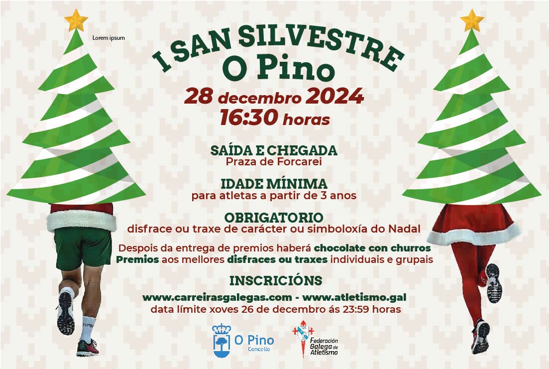 Silvestre do Pino. Esta carreira popular, organizada pola área de Deportes do Concello en colaboración coa Federación Galega de Atletismo e co Club Atletismo O Pino, marcará unha nova tradición no calendario festivo do municipio, combinando a actividade física coa alegría propia destas datas.
