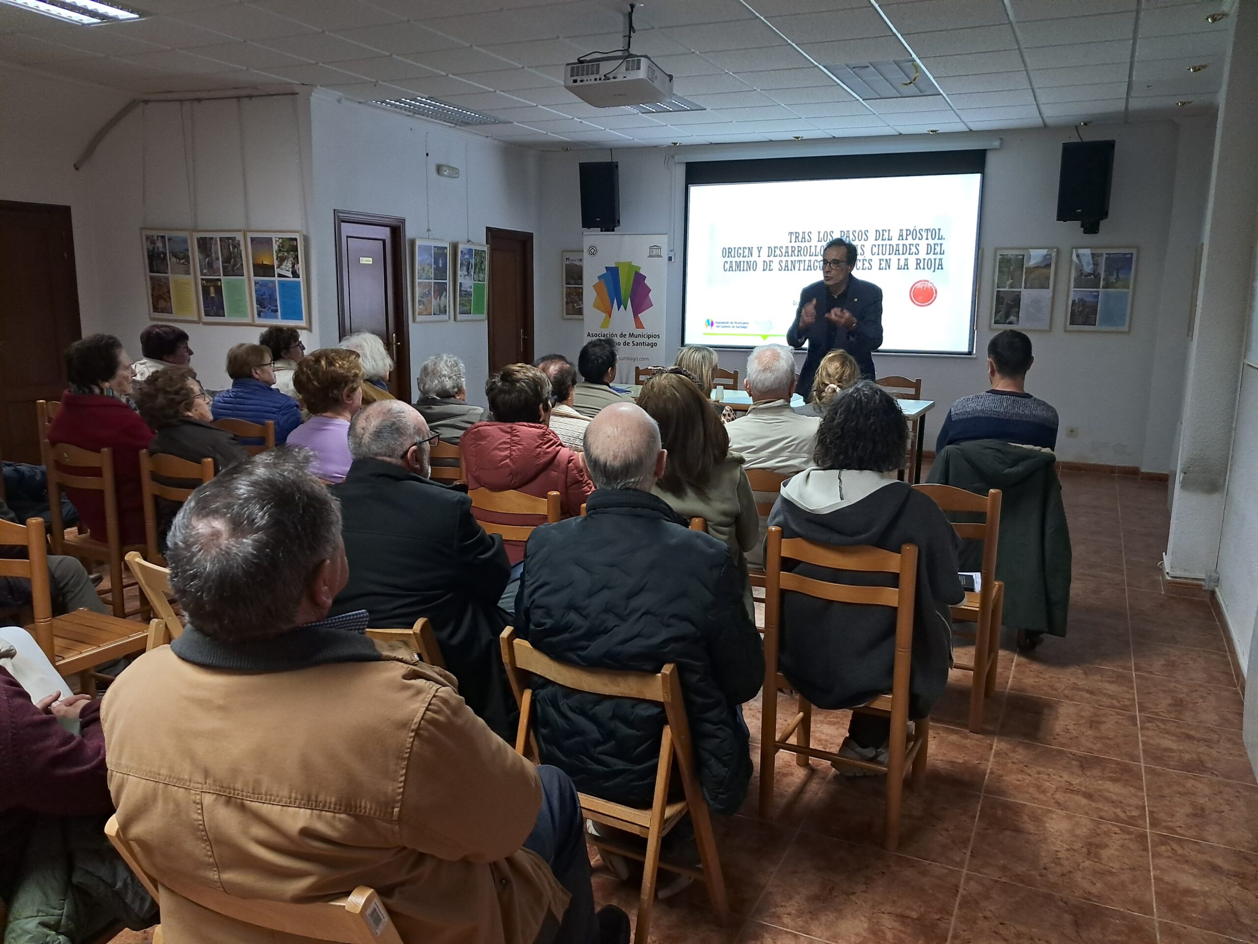 La conferencia principal corrió a cargo de Javier García Turza, Doctor en Historia, profesor de la Universidad de La Rioja y coordinador del Comité Científico de la AMCS, quien ofreció una ponencia titulada “Tras los pasos del Apóstol: Origen y desarrollo de las ciudades del Camino de Santiago Francés en La Rioja”. Ante unas 40 personas, García Turza desgranó el impacto del Camino de Santiago en el desarrollo urbano y social de La Rioja durante la Edad Media, explicando cómo la peregrinación y la protección de los reyes impulsaron la aparición de nuevas villas, la organización de mercados y ferias, así como el crecimiento de núcleos urbanos como Grañón, Nájera, Logroño o Santo Domingo de la Calzada.