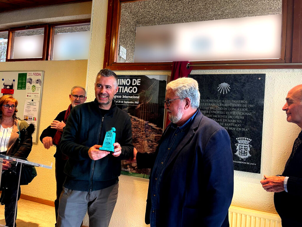 La Federación Española de Asociaciones de Amigos del Camino de Santiago ha entregado un detalle en forma de reconocimiento al Ayuntamiento de Jaca por su colaboración y apoyo a dicha Federación, y al alcalde, Carlos Serrano, la insignia de la plata.