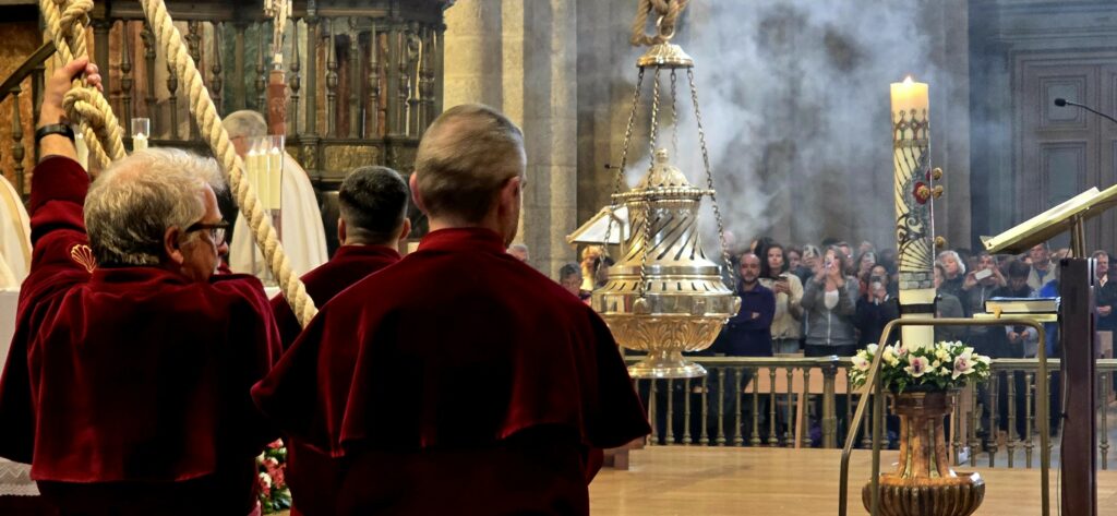 El acto litúrgico, al que han asistido más de mil personas, contó con la participación de representantes institucionales, peregrinos, fieles y alcaldes de nuestra asociación, la misa se cerró con el emotivo bandeo del botafumeiro.