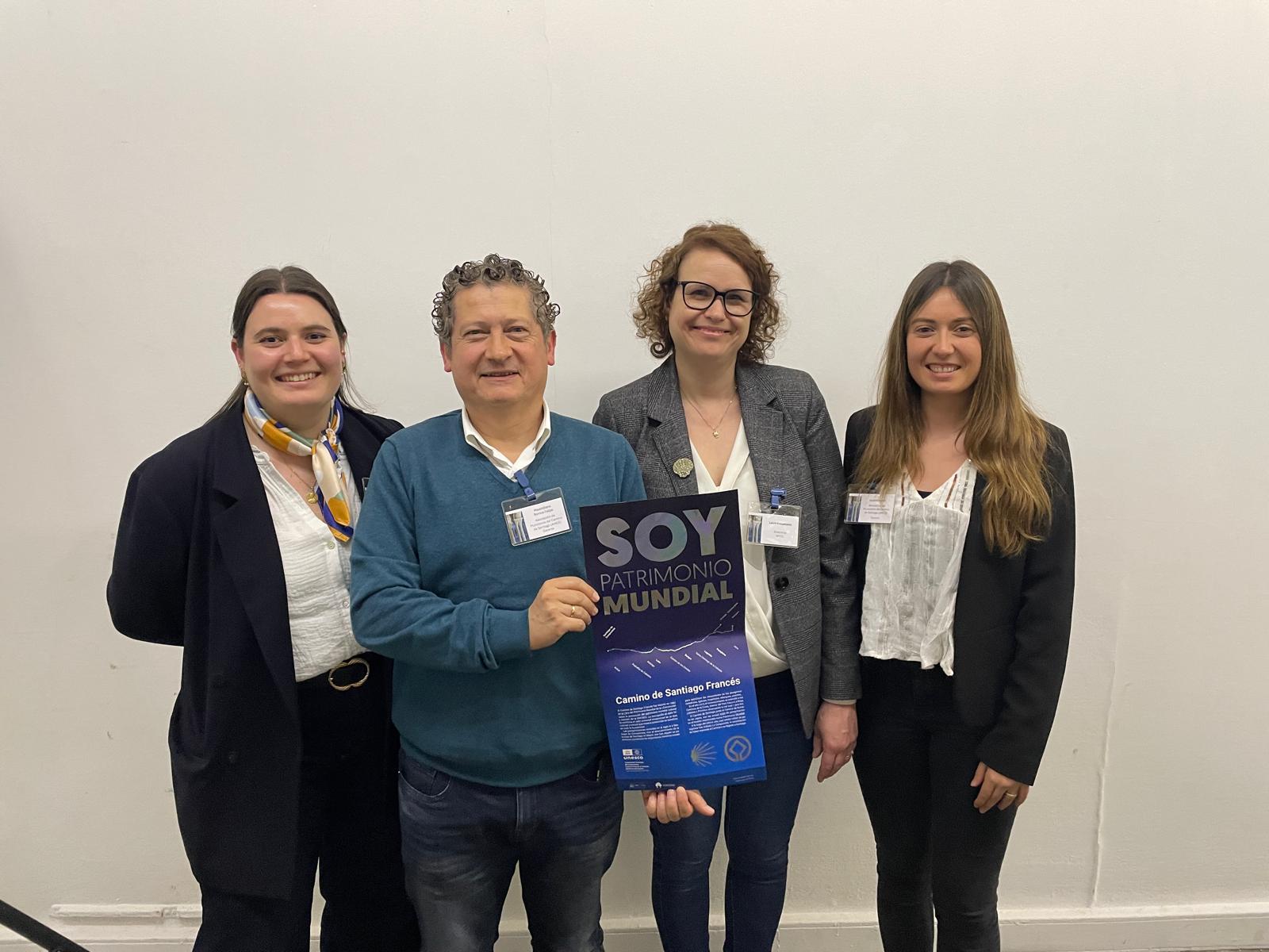 - Celia Quintard (Responsable de desarrollo turístico de l’Agence française des Chemins de Compostelle, Maximiliano Barrios (gerente de la AMCS), Laure Koupaliantz (Directora de l’Agence française des Chemins de Compostelle) y Sandra Martín (técnico AMCS)