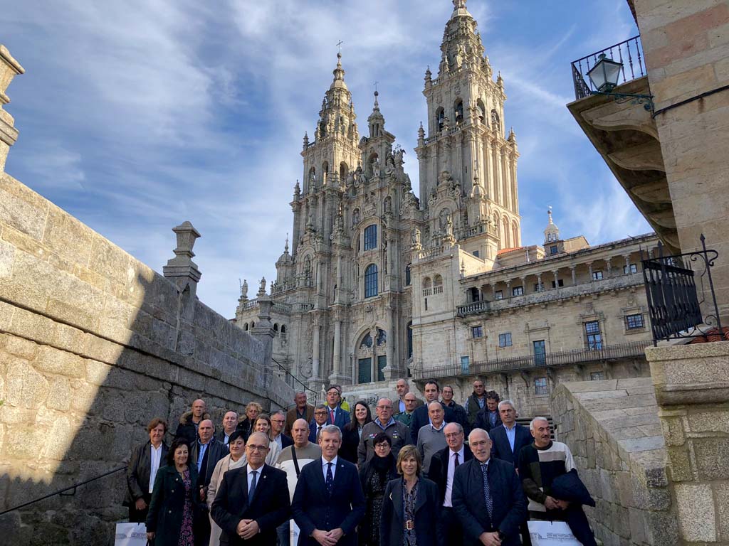 Una representación de la Asociación de Municipios del Camino de Santiago Francés (AMCS) se desplazaba a Santiago de Compostela este fin de semana con un doble objetivo: presentar su ofrenda al Apóstol e ir preparando el trigésimo aniversario de la declaración del Camino de Santiago Francés como Patrimonio Mundial.