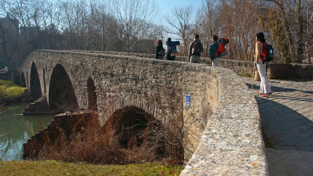 Al otro lado del Portal de Francia, el único acceso en la muralla que se conserva intacto desde 1553, el encantador centro histórico de Pamplona recibe a los caminantes con generosa hospitalidad. En el interior de los muros, los peregrinos encontrarán la catedral de Santa María la Real, que tras una sobria fachada neoclásica esconde un magnífico templo gótico con su bello claustro. Asimismo, las iglesias fortificadas medievales de San Nicolás y San Saturnino, completan el listado de lugares imprescindibles que visitar.