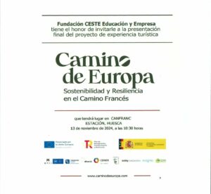 La Asociación de Municipios del Camino de Santiago (AMCS) participó ayer en el evento de clausura del proyecto de experiencia turística «Camino de Europa». sostenibilidad y Resiliencia en el Camino Francés, organizado por la Fundación Ceste Educación y Empresa.