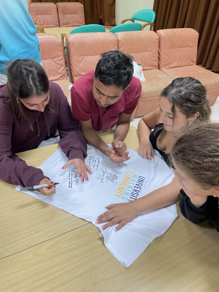 El programa University Walking Community fue creado con el objetivo de facilitar a la comunidad universitaria la realización de acciones de voluntariado en el Camino de Santiago y en instituciones públicas. Su propósito es promover los valores de cooperación, solidaridad, diversidad, tolerancia y unidad.