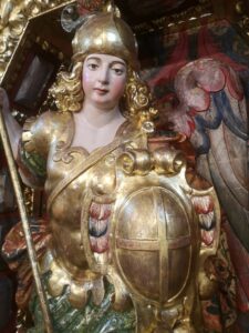 El retablo de San Miguel Arcángel en Castiello de Jaca, ha sido restaurado recientemente gracias al convenio de colaboración suscrito por el ayuntamiento y la iglesia parroquial de esta localidad perteneciente a la diócesis de Jaca. La ilusión y el compromiso de su párroco, alcalde y feligreses por conservar y trasmitir a futuras generaciones la historia y tradiciones de esta villa medieval punto de confluencia en el camino de Santiago Francés, culmina con esta importante obra de restauración de su retablo mayor. En campañas anteriores se ha llevado a cabo la recuperación de otra de las joyas patrimoniales que alberga la cabecera de esta iglesia, la venerada “Arqueta de las Cien Reliquias” situada en un pequeño nicho con arquería decorado con pinturas murales.