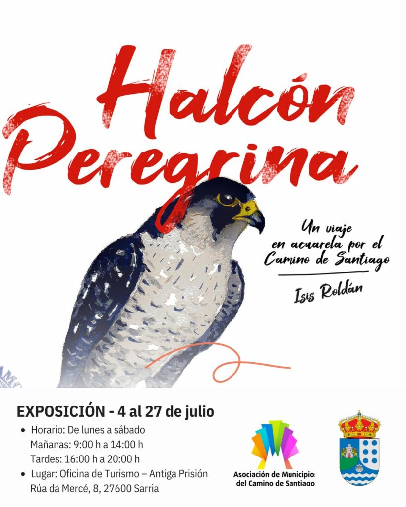 La Oficina de Turismo de Sarria inaugura este viernes la exposición “Halcón Peregrina”, una original propuesta de la artista y peregrina Isis Roldán Simal, que reúne más de treinta acuarelas inspiradas en su experiencia personal recorriendo el Camino de Santiago Francés. La muestra permanecerá abierta al público hasta el próximo domingo 27 de julio, en horario habitual de la oficina.