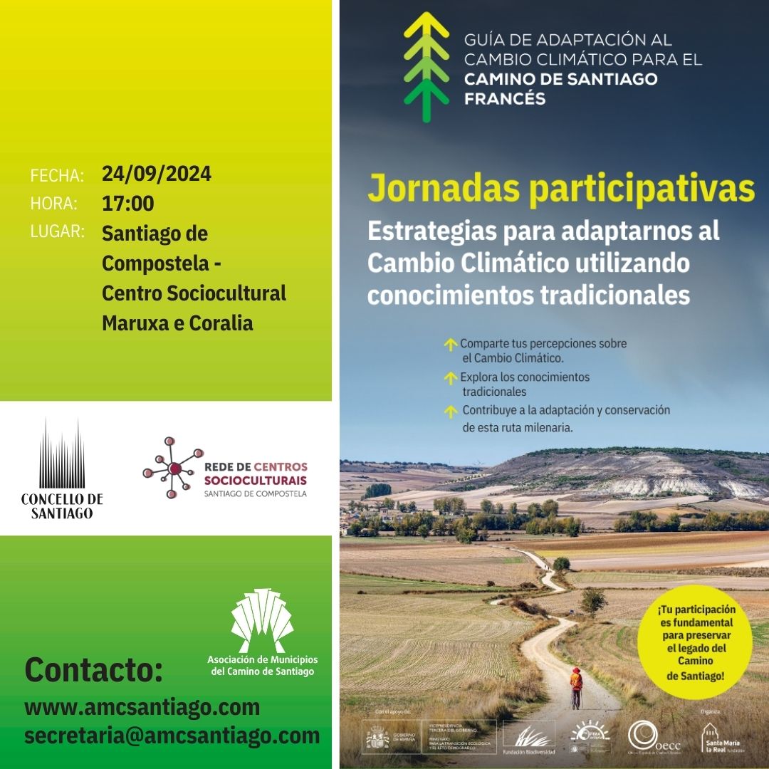 Santiago de Compostela acogerá el martes 24 de septiembre, la décima y última jornada participativa que servirá para reflexionar en torno a la adaptación del Camino de Santiago Francés al Cambio Climático. La iniciativa forma parte del proyecto “Guía de adaptación al cambio climático para el Camino de Santiago Francés”, El reto, este [...]