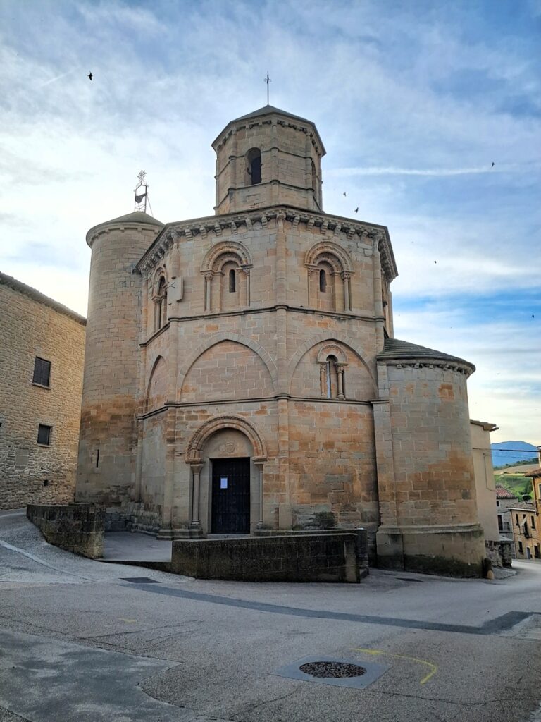Durante su intervención, el profesor Martínez de Aguirre expuso con rigor académico y lenguaje accesible las claves del arte románico vinculado a las rutas de peregrinación medieval, con especial atención a la singular iglesia del Santo Sepulcro de Torres del Río, cuya arquitectura octogonal evoca directamente el modelo del Santo Sepulcro de Jerusalén. El conferenciante también contextualizó esta construcción dentro de un conjunto más amplio de edificios vinculados a la espiritualidad del Camino y a órdenes como la del Santo Sepulcro o la de San Juan de Jerusalén, destacando el papel de promotores laicos -muchas veces mujeres nobles- en la fundación de hospitales e iglesias con funciones funerarias.