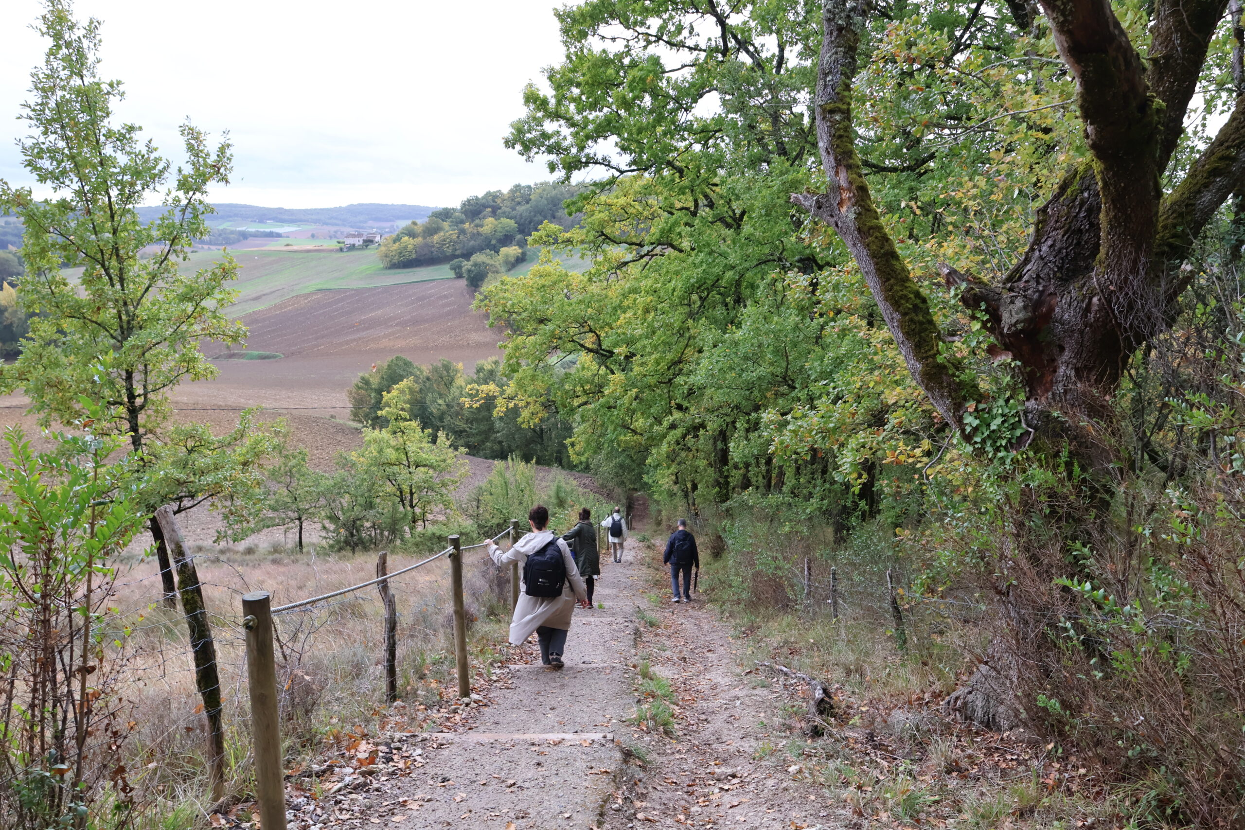 La jornada del 21 de octubre incluyó una visita técnica al Camino de Santiago, entre las localidades de Sainte-Juliette y Lauzerte. Los socios del proyecto recorrieron a pie este tramo emblemático con el propósito de analizar in situ los recursos patrimoniales, naturales y turísticos vinculados al itinerario jacobeo. Esta actividad permitió evaluar directamente aspectos clave para la implementación de acciones piloto en el marco del proyecto ULTREIA SUDOE, reforzando el enfoque territorial y la cooperación transnacional en torno a los Caminos de Santiago.