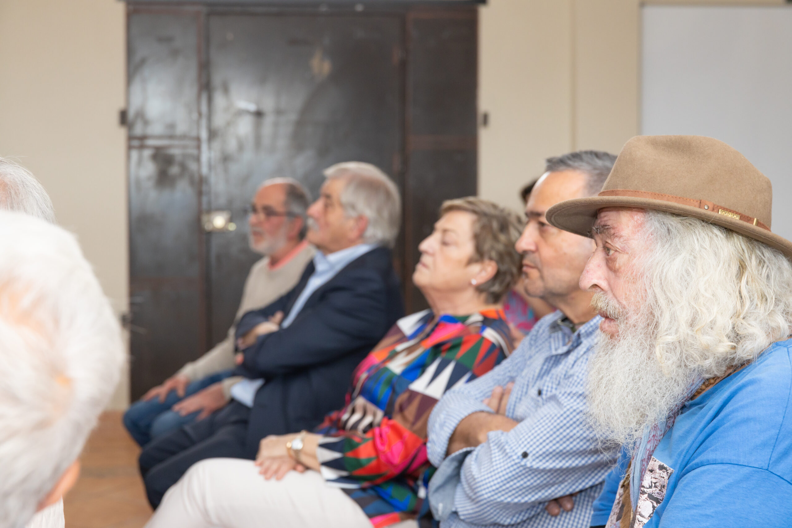 Algunas de estas personas compartían hoy mesa con Paco Alcántara y los representantes de la asociación durante la presentación de los vídeos, ante la atenta mirada de los vecinos que han llenado el centro de ocio de la localidad para arropar la presentación.