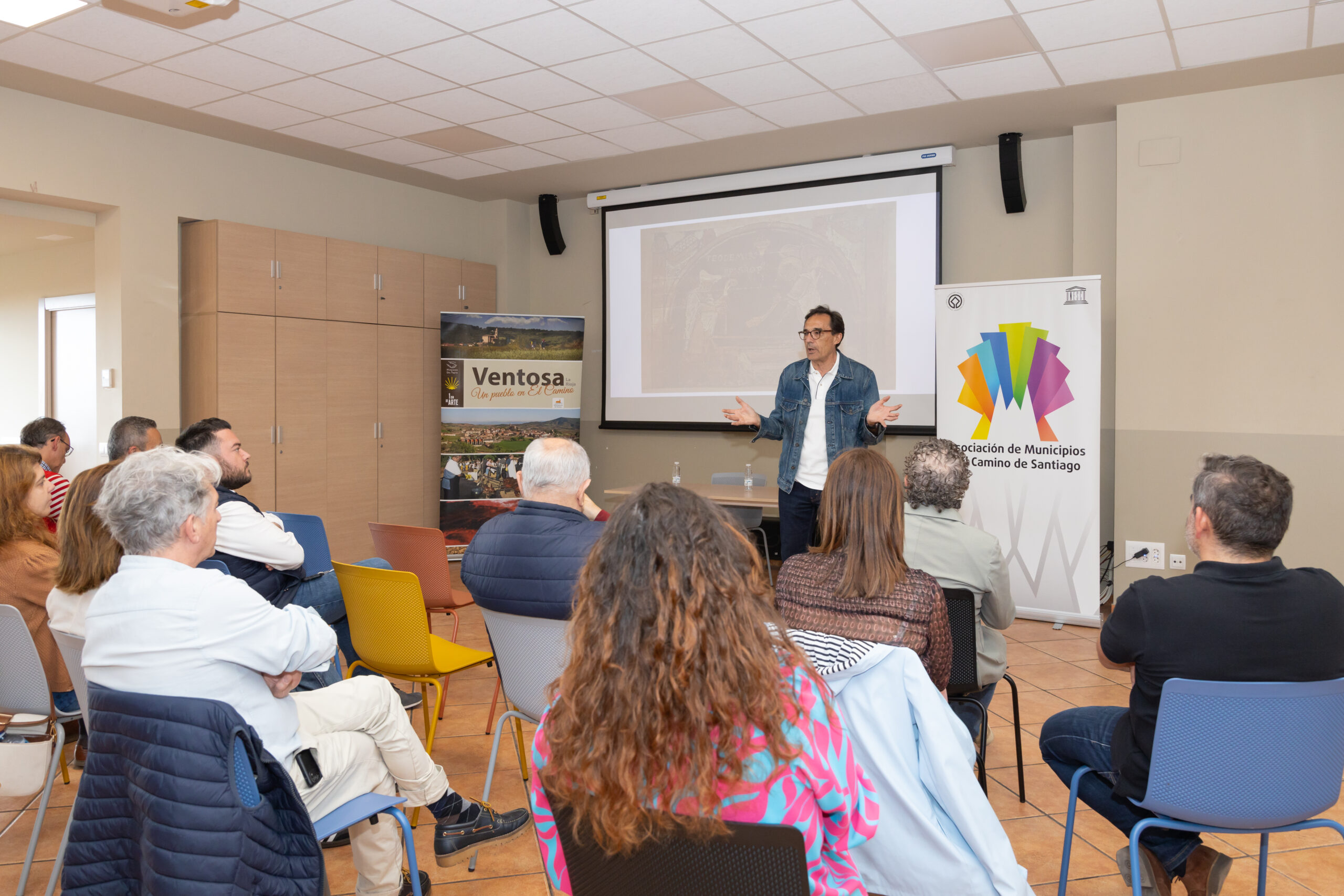 La jornada cultura, se cerraba por la tarde con una nueva convocatoria del ciclo «Conversaciones en el Camino”, con el que desde la asociación quieren explorar y debatir algunos de los elementos clave que definen el Camino de Santiago Francés para transformarlo en un itinerario más inclusivo, dinámico y sostenible, que beneficie tanto a los residentes locales como a los peregrinos. En Ventosa, el ciclo se dividió en dos mesas de debate y trabajo.