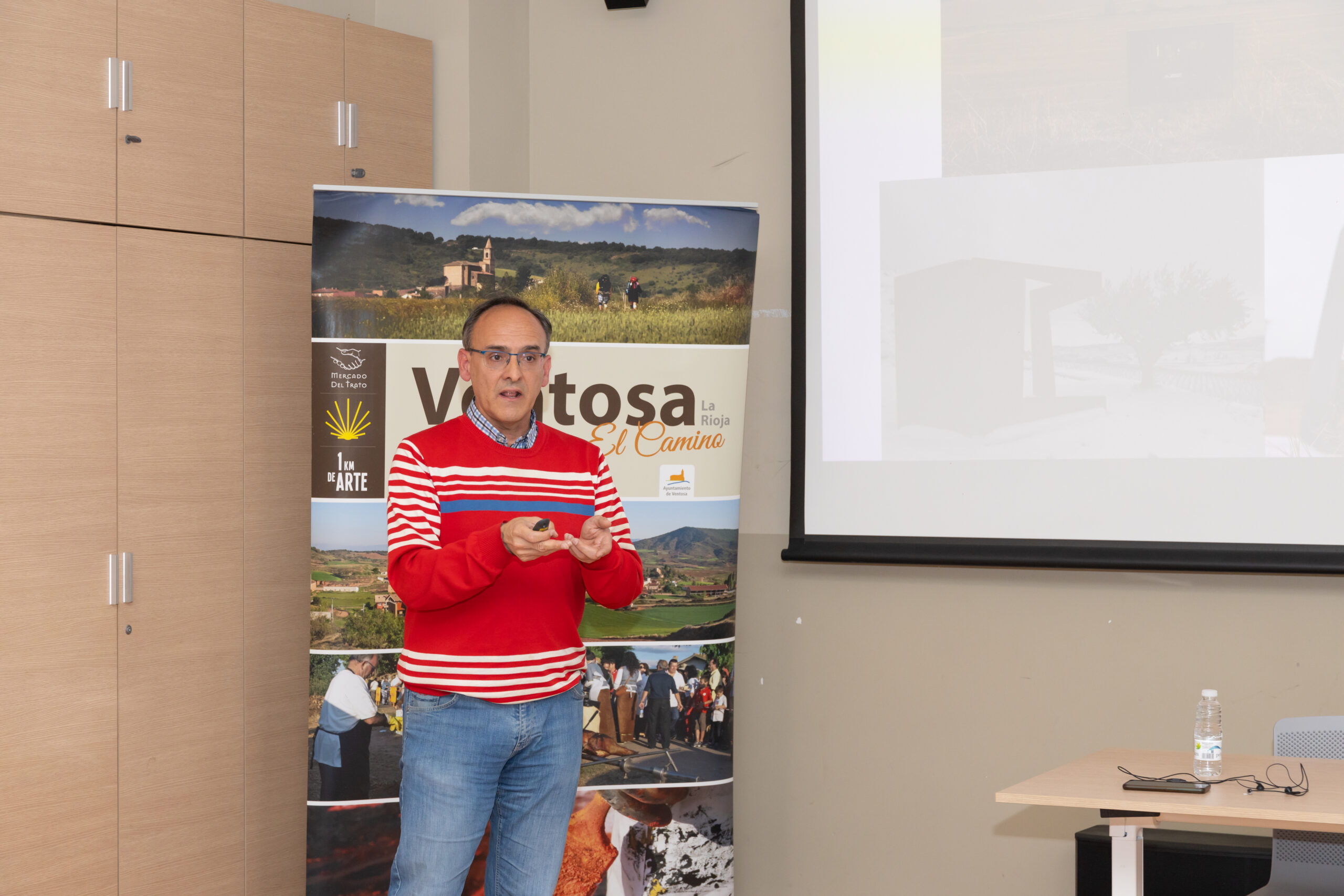 En la primera mesa, Javier García Turza, Profesor Titular de Historia Medieval de la Universidad de La Rioja, explicaba las circunstancias que favorecieron el desarrollo del Camino de Santiago durante los siglos XI y XII y abría el debate sobre cómo el patrimonio cultural puede ser un estímulo para el desarrollo de los pueblos riojanos, destacando el proyecto «1 Kilómetro de Arte».
