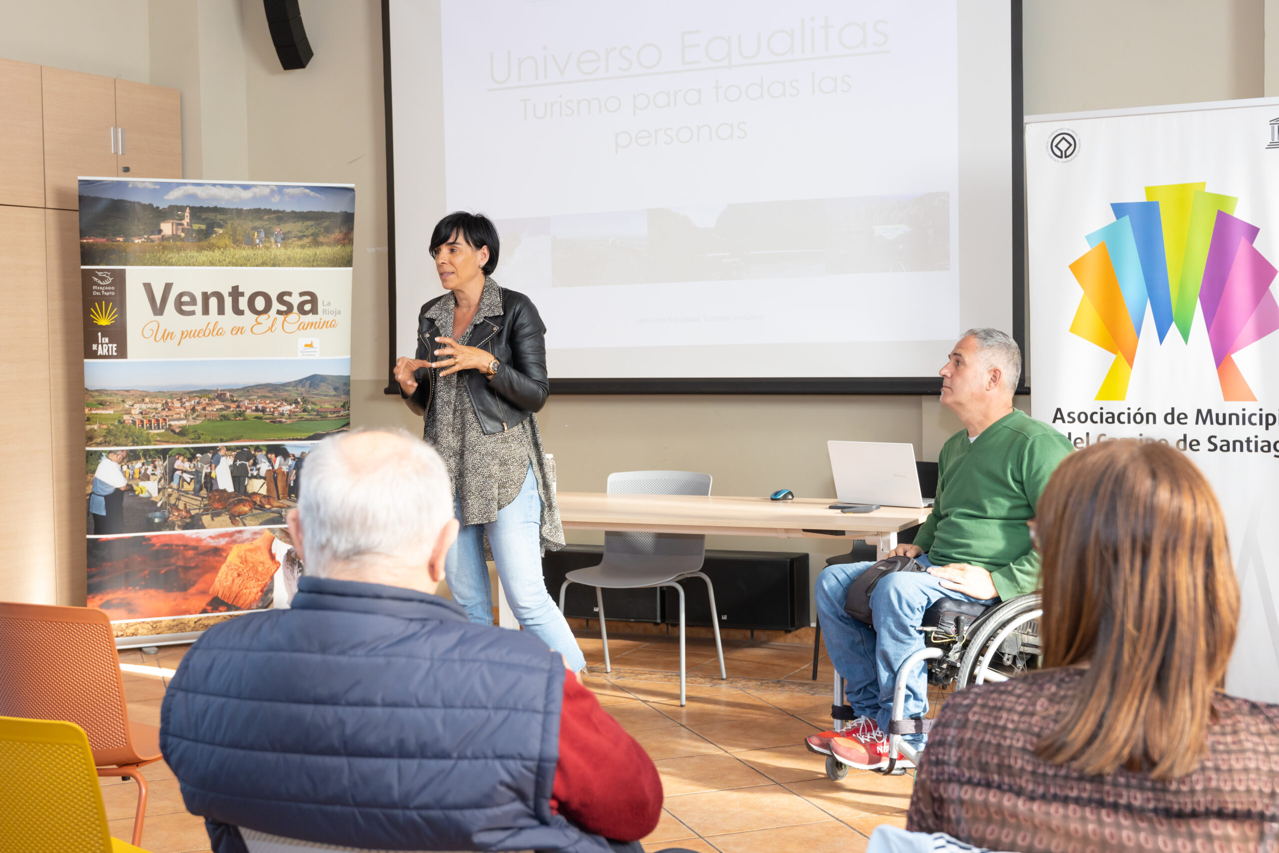 En la segunda mesa, Diego Esquide Eizaga, responsable del Área de Proyectos de Fundación Caja Rioja; Kity, en representación de Silleros Viajeros, e Izaskun Benito, gestora del portal de turismo accesible www.equalitasvitae.com, mostraban a los asistentes cómo viven el Camino las personas con movilidad reducida y han reflexionado sobre cómo mejorar su experiencia.